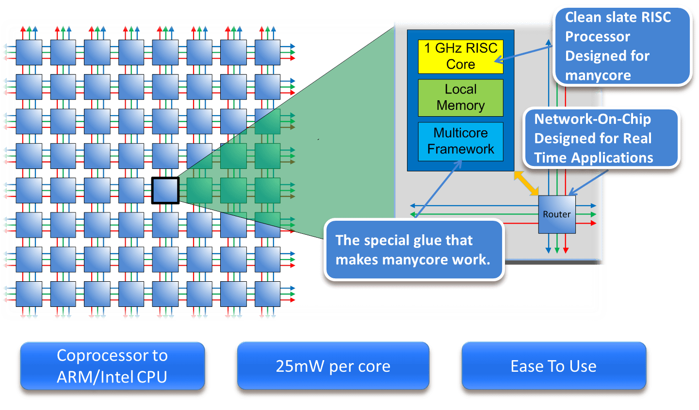 Doch ein bei uns kaum bekanntes Unternehmen namens Adapteva gibt sich damit noch lange nicht zufrieden. Es hat ganz andere Pläne: Einen 64-Kern-Prozessor mit einer Taktfrequenz von 51 GHz. Kein Scherz!