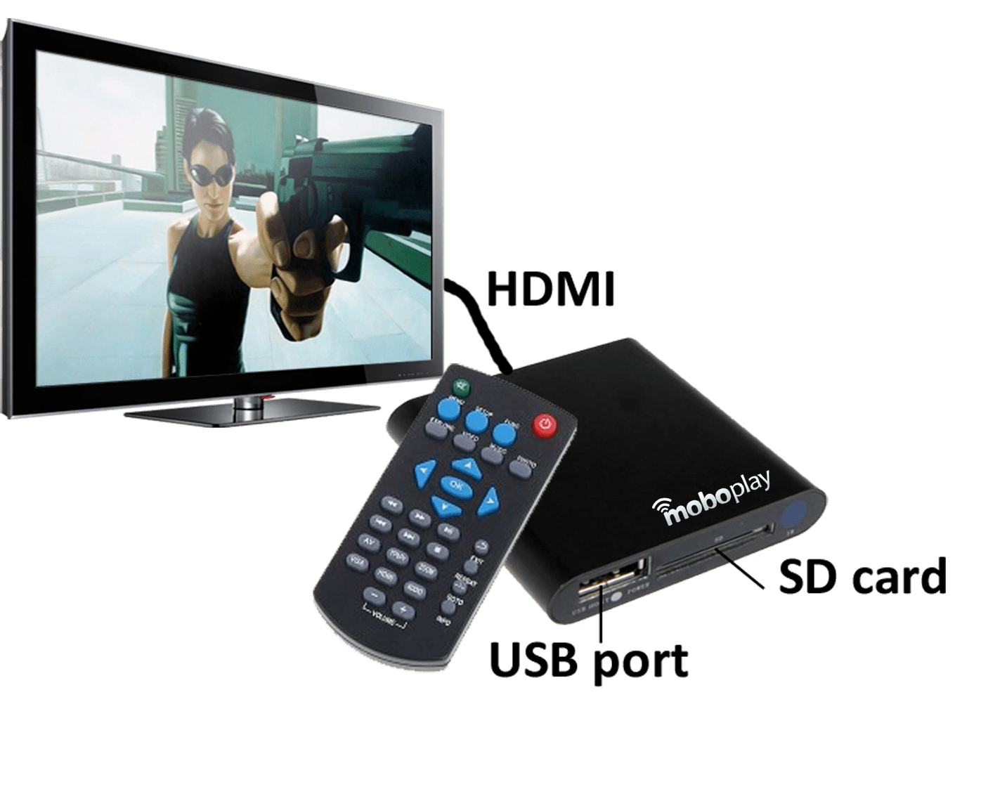 Moboplay ist die praktische Ergänzung für den Full HD TV-Genuss auch auf älteren TV-Geräten, die die neuesten Dateiformate noch nicht abspielen können! Mit Abmessungen von 60 x 64 mm gehört der Moboplay zu den kleinsten Full HD Media Playern und mit 69,90 ist er auch noch erschwinglich.