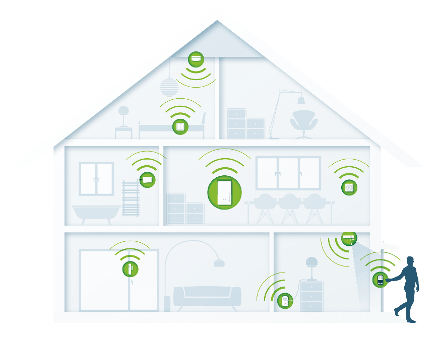 Mit einem einfachen Tür- oder Fenstersensor wird im Smart Home von devolo die Heizung automatisch heruntergeregelt. Das funktioniert über das vernetzte Heizkörper- oder Raumthermostat. Der gleiche ÂSensor kann auch beim Thema Sicherheit von Nutzen sein. Wird Tür oder Fenster geöffnet, während wir außer Haus sind, informiert die zugehörige App (erhältlich für iOS und ÂAndroid) über einen möglichen Einbruch.
