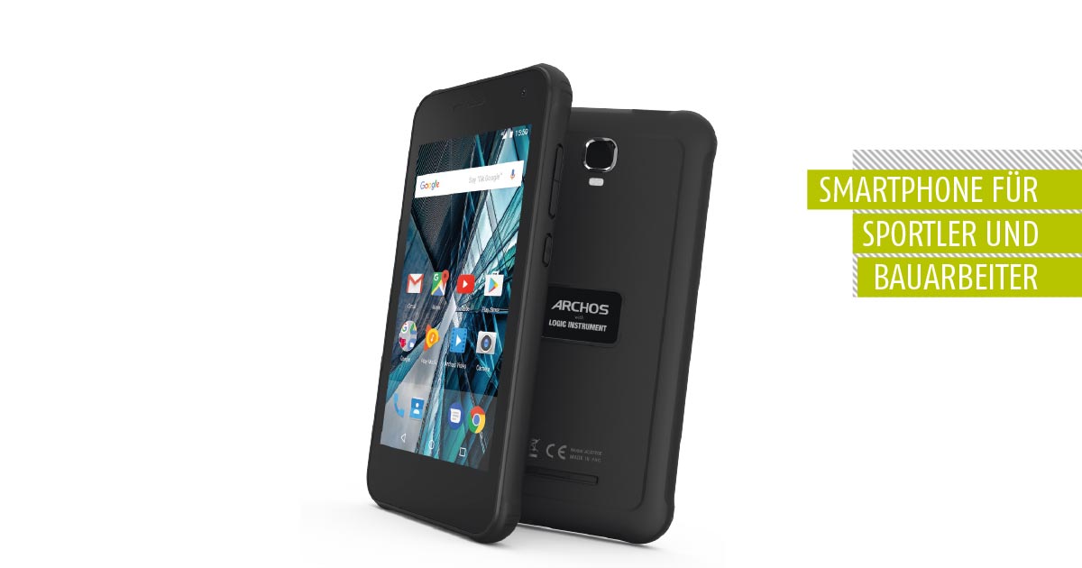 Auch das Smartphone „Archos Sense 47X“ ist für Sportler gedacht, für Outdoor-Freunde und für Anwender, deren Arbeitsplatz ein robustes Handy voraussetzt. Dementsprechend ist das Sense 47X nicht nur staub- und wasserdicht (nach dem IP 68-Standard), sondern auch bruchsicher. Konkret soll das Gerät Stürze aus über 1 Meter Höhe unbeschadet überstehen.
