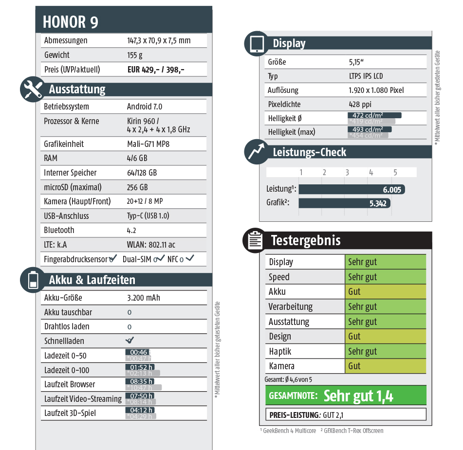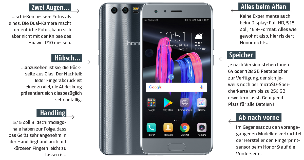 Das Honor 9 ist abermals um Nuancen besser als der Vorgänger, sucht allerdings nach einem Alleinstellungsmerkmal. Wer ein solides Smartphone zum attraktiven Preis sucht kann aber beruhigt zugreifen.