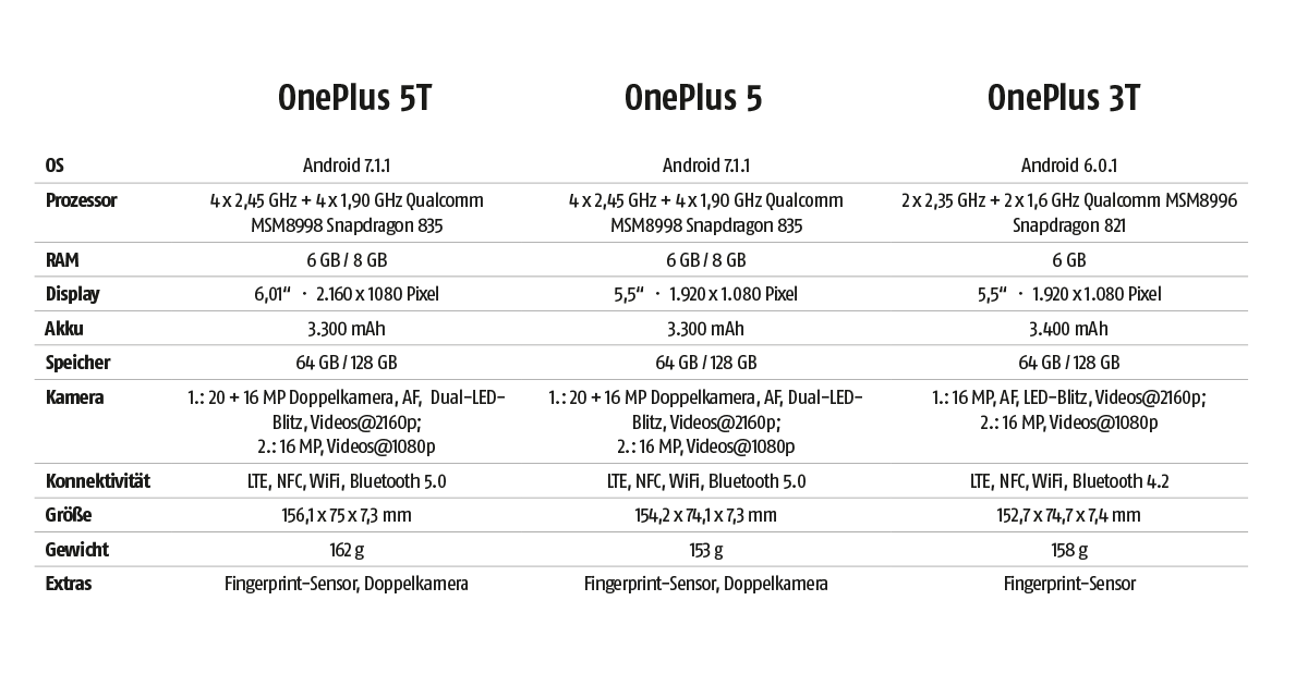Kurz vor Redaktionsschluss erreichte uns eine überraschende Mail: Die ersten Testmuster des OnePlus 5T wären versandbereit, wir könnten also eines bekommen. Vorgestellt wurde das OnePlus 5T am 16. November, wir hatten demnach schon ein paar Tage davor die Chance, das Smartphone auf Herz und Nieren zu prüfen. Klar, dass wir da zustimmten – immerhin kursierten monatelang Gerüchte über das Zwischenmodell, gesicherte Infos waren bis zur Präsentation (beziehungsweise bis uns das Paket erreichte) aber Mangelware. So war beispielsweise komplett unklar, wie weit die Neuerungen beim OnePlus 5T gehen würden. Zur Auffrischung: Vor ziemlich genau einem Jahr zauberte OnePlus das 3T aus dem Hut und überraschte damit Anwender und Presse gleichermaßen. Das OnePlus 3T ähnelte dem ein halbes Jahr davor vorgestellten OnePlus 3 in vielen Punkten, nur der Prozessor (vom Snapdragon 820 auf Snapdragon 821) und die Frontkamera (von 8 auf 16 MP) nebst ein paar Kleinigkeiten wurden einem Update unterzogen. Beim Hersteller war man sich dieser minimalen Änderungen bewusst, weshalb fortan auch nur noch das OnePlus 3T erhältlich war.