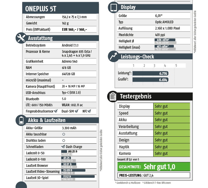 Wer ein OnePlus 5 besitzt, muss keinesfalls umsteigen. Tatsächlich wäre das Geldverschwendung, dafür sind die Verbesserungen schlichtweg zu marginal. OnePlus bessert in den notwendigen Bereichen nach, um bis zum nächsten Evolutionsschritt kompetitiv zu bleiben. Nachdem der Preis sehr attraktiv ist wird auch das OnePlus 5T seine Käufer finden. Ein solides High End-Smartphone also, allerdings ohne den ganz großen Wow-Effekt – der war allerdings auch nicht zu erwarten. Für die Bestnote reicht es aber auch so.