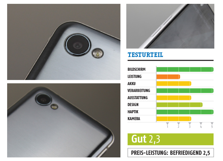 Kein Test ohne zumindest ein Wort zur Kamera des Telefons: Das 13-Megapixel-Modul bildet mit ausreichend Details ab und rauscht bei wenig Licht nur schwach. In der Praxis fällt jedoch der teilweise träge Fokus auf. Hier wäre statt Raumeffizienz Zeiteffizienz gefragt.