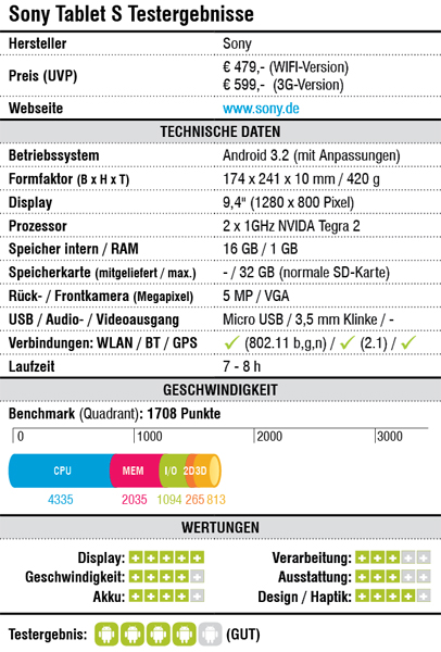 Mit dem Tablet S stieg auch Sony in den Tablet-Markt ein. Den schärfsten Konkurrenten von Apple, Samsung und Co. wollen die Japaner mit leistungsstarker Hardware, einem einzigartigen Design und einem mit vielen Extras ausgestatteten Android 3.2 Paroli bieten.