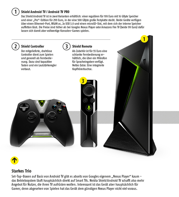 - Mischung aus Set-Top-Box und Spielkonsole auf Android TV-Basis