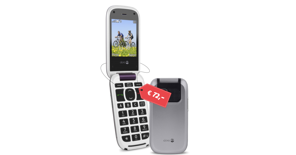 Auch Doro führt noch ein traditionelles Klapp-Handy. Dank des bunten Bildschirms und der Kamera erfüllt das Phoneeasy 613 auch die Ansprüche von Nutzern, die ein wenig mehr möchten. Hörgeräte sind kompatibel, die Lautstärke lässt sich über das normale Maß hinaus aufdrehen. Tolle Akkulaufzeit und sauber verarbeitet. Eine Ladestation wird mitgeliefert.