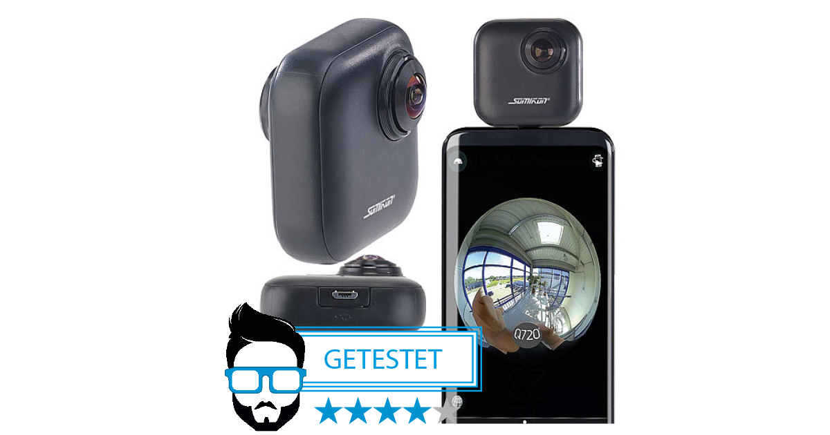 Die „Somikon 360°-Panorama-Kamera“ stellt Fotos und Videos mit Rundumblickwinkel her. Anschließen können Sie die Aufsteckkamera an Android-Smartphones mit USB-OTG-Unterstützung. Die dazugehörige App wandelt die Aufnahmen der beiden Ultraweitwinkelobjektive in ein 360-Grad-Bild um – und kann die Ergebnisse auch gleich auf YouTube und Facebook hochladen. Live-Übertragungen sind ebenfalls möglich.