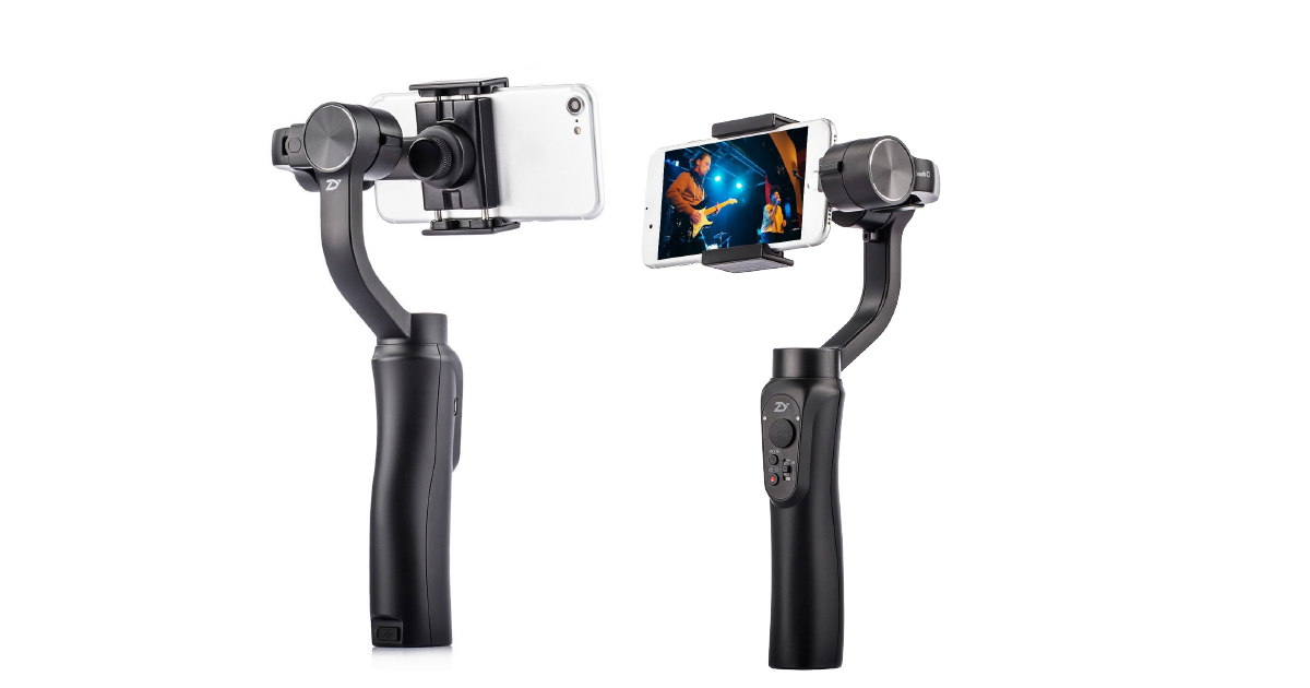 Auch mit dem Smartphone können Sie professionell wirkende Videos drehen, wenn Sie einen Drei-Achsen-Gimbal wie den Zhiyun Smooth Q verwenden. Dieser besitzt drei starke Motoren, mit denen er Verwackelungen eines in der Halterung sitzenden Handys präzise ausgleichen kann. Über einen Analogstick kann das Gerät in alle Richtungen bewegt werden, außerdem gibt es Tasten und Regler für Modus, Aufnahme, Kamerawechsel und digitalen Zoom. Mit 440 Gramm ist der Smooth Q nicht besonders schwer, allerdings besteht er bis auf den mechanischen Teil aus Kunststoff und ist auch nicht sehr hochwertig verarbeitet. Dafür ist der Preis vergleichsweise gering, und die Leistung ist dennoch äußerst gut. Der Akku ist fest verbaut und wird über einen Micro-USB-Anschluss mit neuer Energie versorgt. Über eine USB-Ladebuchse am Fuß des Gimbals kann der Zhiyun Smooth Q zudem das Smartphone mit Strom versorgen.