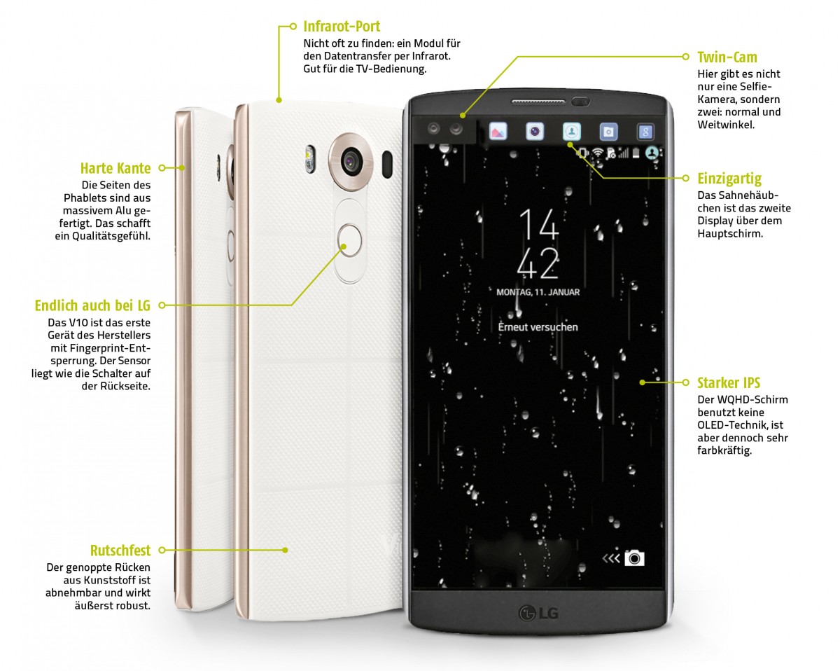 LG hat FamilienÂzuwachs Âbekommen. Und Zuwachs ist Âdabei durchaus Âwörtlich zu Âverstehen, denn das V10 ist größer als seine ÂGeschwister, kann aber auch mehr. Wir sagen, wo die ÂEigenheiten dieses Riesen liegen.