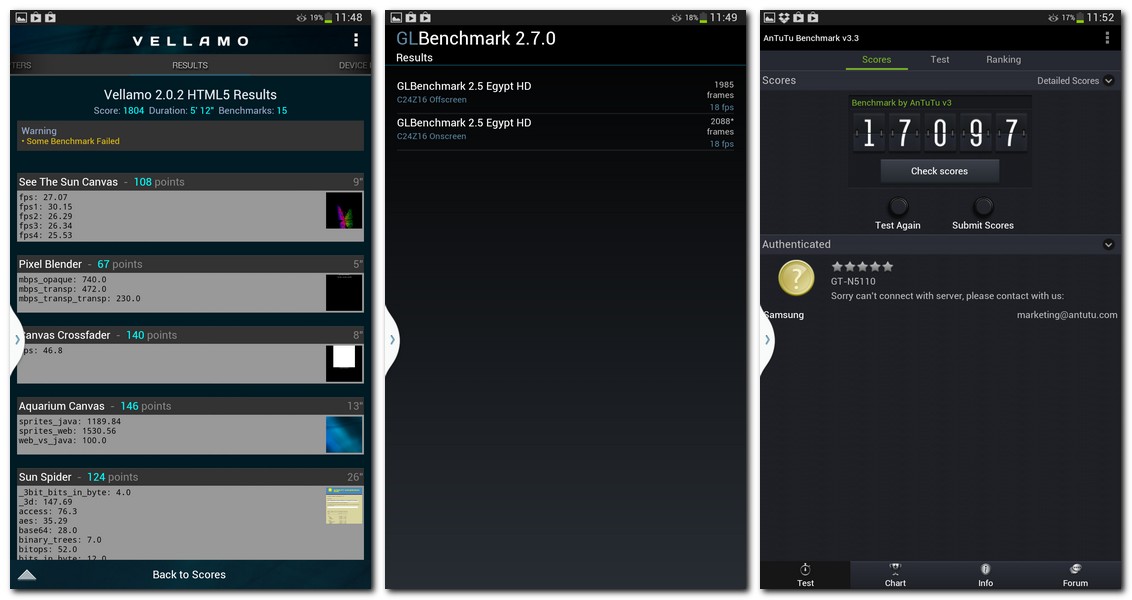 In gängigen Benchmark-Apps wie Antutu, GL Benchmark 2.7.0 und Vellamo schlägt sich das Galaxy S4 hervorragend und ist etwas schneller als das HTC One.