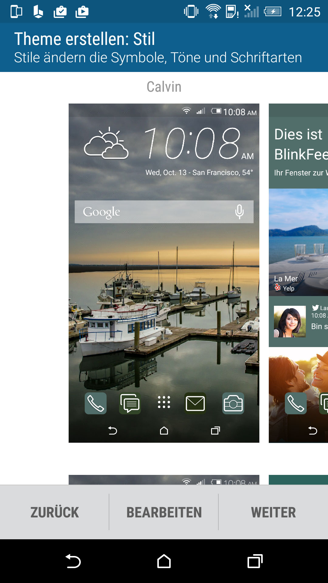 Auch bei der Software gilt: Evolution statt Revolution. Das M9 wird mit HTCs AndroidÂOberfläche „Sense“ in der neuen Version 7 Âausgeliefert, die Basis ist Android 5.0. Als erste Neuerung fällt ein Homescreen-Widget ins Auge, das kontextbasierte Inhalte liefert: Ob zuhause, am Arbeitsplatz oder unterwegs, der Homescreen soll immer die zur Situation passenden Apps anzeigen. Die betreffenden Orte und Inhalte definiert der Nutzer zum Teil selbst, zum Teil kommen Vorschläge von HTC. Ebenfalls neu ist ein Themen-Tool, das es nun einfacher macht, eigene Themes für die Oberfläche zu erstellen: Das Farbschema wird auf Wunsch automatisch auf die dominanten Farben im Hintergrundbild abgestimmt.