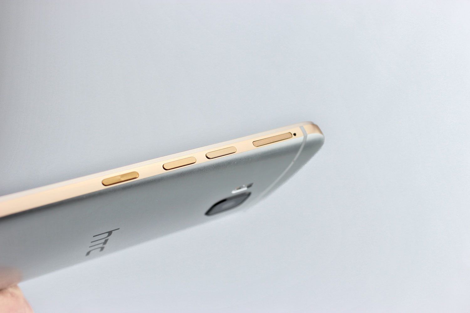Mit dem Generationswechsel an der Spitze seines Smartphone-PortÂfolios kam HTC dem mächtigen Konkurrenten Samsung in diesem Jahr um einige Stunden zuvor. Schon am Nachmittag des 1. März hielt CEO Peter Chou das One M9 in die Kameras, das Galaxy S6 tauchte erst am Abend ins Blitzlichtgewitter. Auf den ersten Blick ist das neue HTC-Flaggschiff nur allzu leicht mit seinem Vorgänger One (M8) zu verwechseln: Direkt von vorne betrachtet unterscheidet sich der Neuling nur durch einen vergrößerten Näherungssensor am oberen Rand. Nach wie vor hüllt sich das One in ein Kleid aus gebürstetem Aluminium, das nichts an Reiz verloren hat. Im Gegenteil: Die Metalloberfläche erstrahlt nun in zwei gefälligen Farbtönen und Finishes. An der helleren Rückseite ist die Oberfläche gebürstet, an den dunkleren Flanken poliert. Die zweifarbige Rückschale ist aus einem einzigen Stück Metall gefertigt, das Innenleben und der Display-Rahmen werden von oben eingesetzt. Die Form des Gehäuses ist jetzt weniger stark gewölbt und minimal flacher. Außerdem sind die seitlichen Kanten etwas schärfer ausgeführt. Das Gerät soll damit weniger leicht aus der Hand rutschen – Nutzer des Vorgängermodells hatten dies oft bemäkelt. Im Vergleich liegt das M9 tatsächlich viel sicherer in der Hand. Am Schluss des Produktionsprozesses wird eine harte Beschichtung auf die Aluminiumlegierung aufgebracht, die Rückseite würde sonst wohl zu schnell verkratzen.