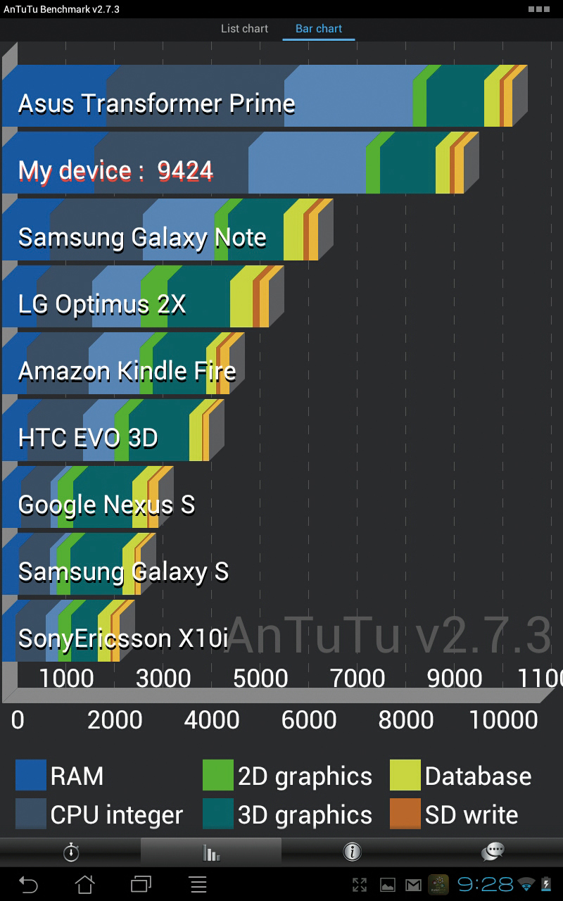 Beim Benchmark-Test von AnTuTu kommt das Transformer Pad auf den zweiten Platz – Platz 1 geht an das Prime.