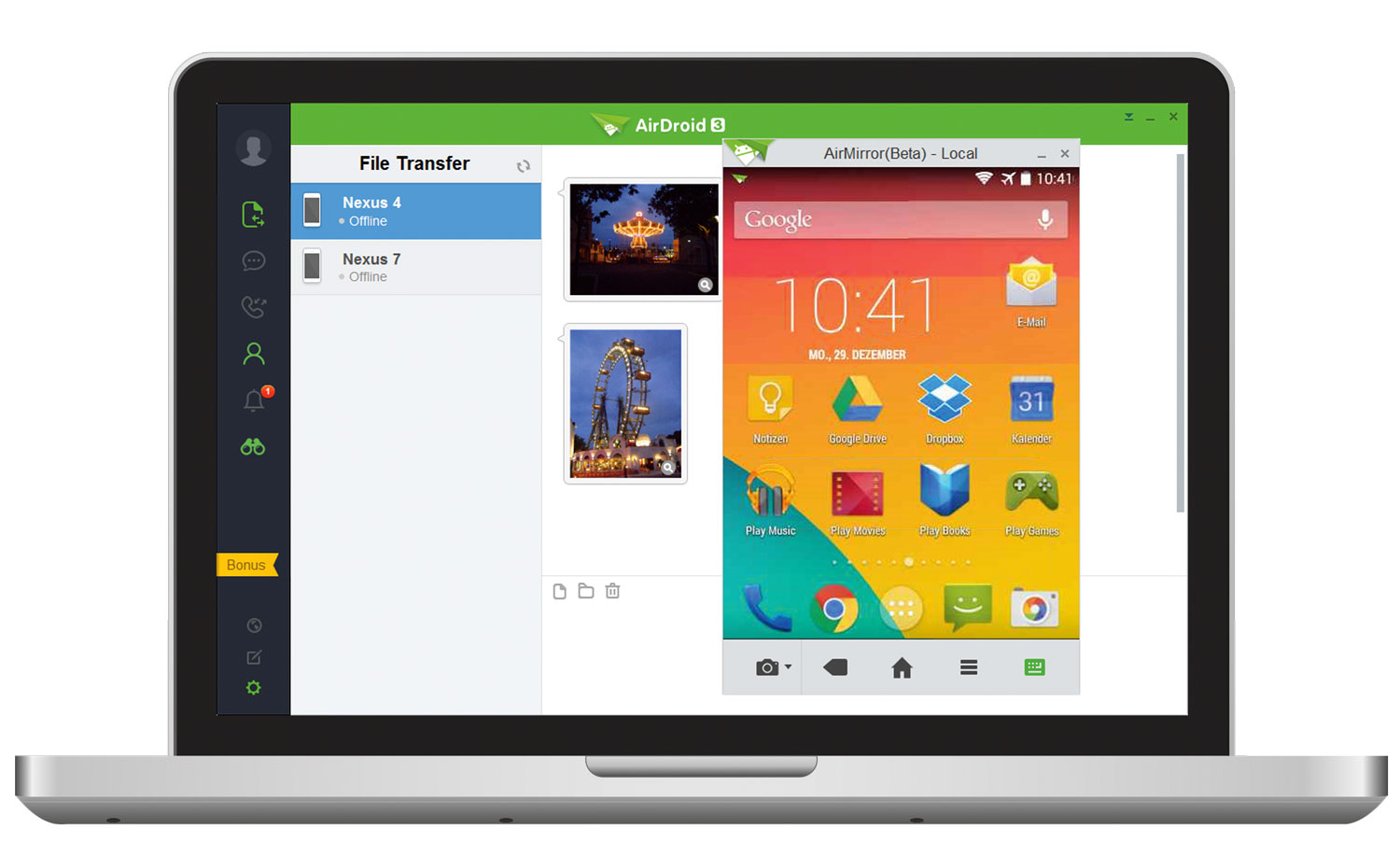 Um eine Verbindung herstellen zu können, müssen Sie auf dem Smartphone die AirDroid-App installieren und auf dem PC das AirDroid-Programm.