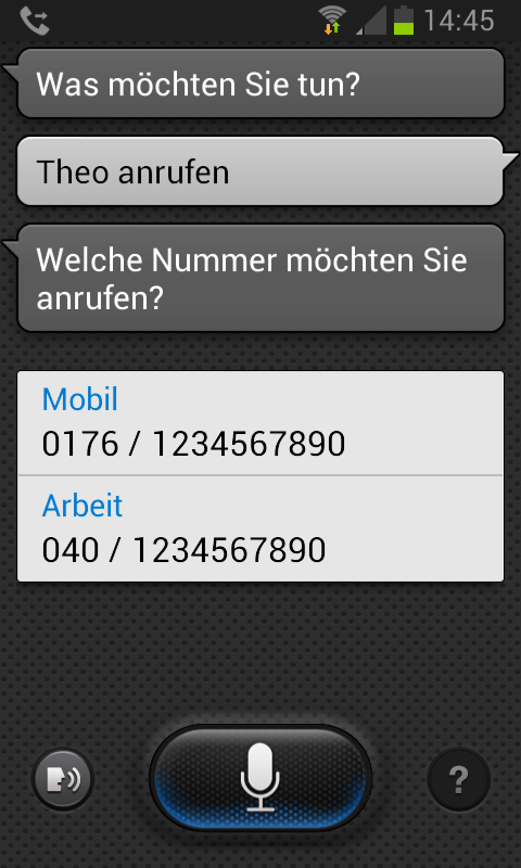 Du kannst auf deinem Galaxy-Smartphone auch mit Hilfe von gesprochenen Befehlen Anrufe tätigen: Drücke zweimal auf die Home-Taste, um die Spracherkennung S Voice zu starten. Sage dann beispielsweise „Theo anrufen“ oder „Ruf Anna im Büro an“.