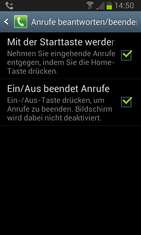 Bei hellem Sonnenlicht und spiegelndem Bildschirm praktisch: Du kannst Anrufe mit der Home-Taste annehmen und mit der Einschalttaste beenden. Du findest diese Optionen über den Menüpunkt „Anrufeinstellungen“ und die Schaltfläche „Anrufe beantworten/beenden“.