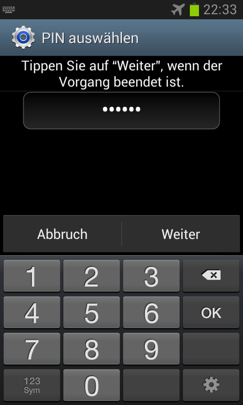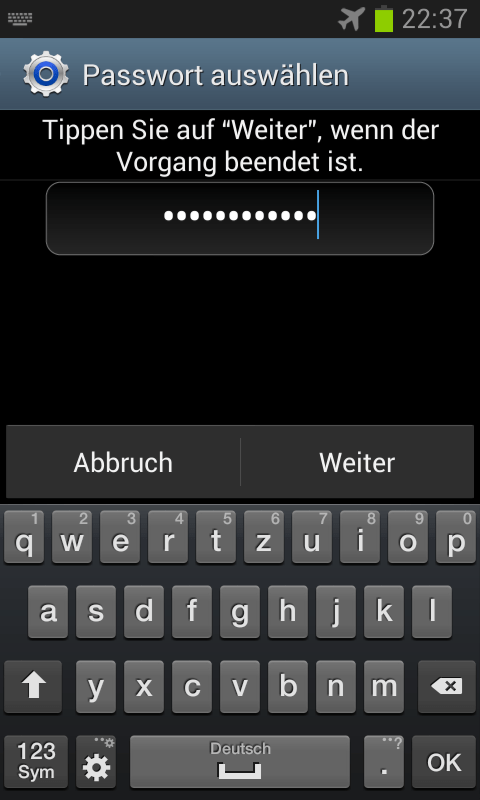 Wenn du im Dialogfenster „Sperrbildschirm auswählen“ die Option „Passwort“ statt „PIN“ antippst, dann kannst du nicht nur Ziffern, sondern auch Buchstaben und Sonderzeichen verwenden. Das erhöht die Sicherheit.