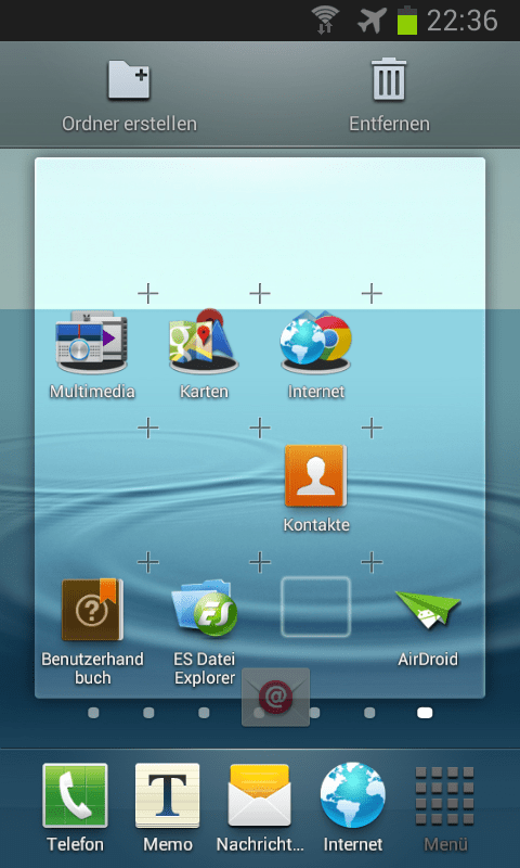 Ziehe den Finger seitwärts über den Bildschirm, um zwischen den einzelnen Seiten des Home-Bildschirms zu wechseln. Rufe über den Menübutton die Option „Seite bearbeiten“ auf, wenn du die Reihenfolge der Seiten verändern oder einzelne Seiten entfernen möchtest.