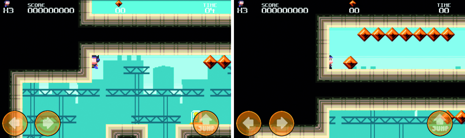 Den Diamanten-Stern erhalten Sie, indem Sie alle Diamanten eines Levels einsammeln. Allerdings sind sie teils schwer aufzufinden, da manche von ihnen nur mit einem Doppelsprung in der Luft, durch riskante Hüpfmanöver über Stacheln oder – wie im Bild rechts – durch geheime Gänge erreichbar sind.