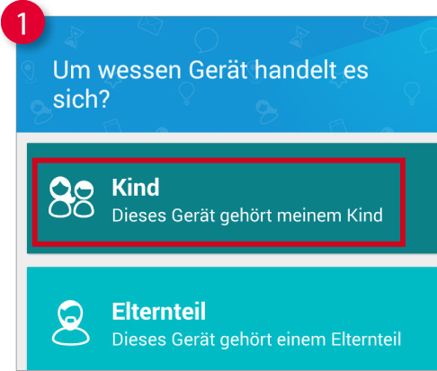Nach dem ersten Start der App müssen Sie ein Benutzerkonto anlegen (durch Antippen der Schaltfläche „Konto erstellen“). Anschließend teilen Sie der App mit, dass es sich bei diesem Gerät um das Smartphone Ihres Kindes handelt – durch Antippen der Schaltfläche „Kind“ . (Und nicht etwa um das Gerät, von dem aus Sie das Smartphone Ihres Kindes kontrollieren möchten.)