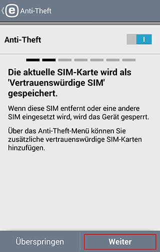 1) Anti-Theft aktivieren