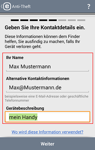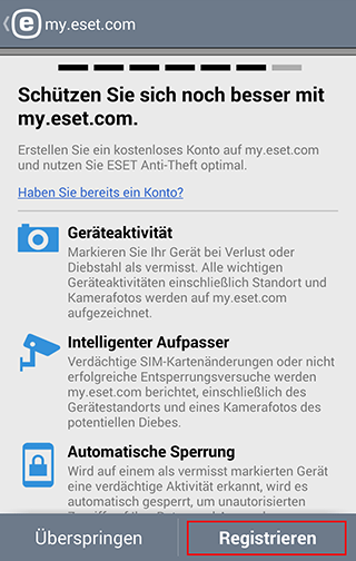 Verbinden Sie Ihr Gerät mit Ihrem kostenlosen my.eset.com-Konto. So können Sie über das Internet Ihr Smartphone überwachen und sperren.