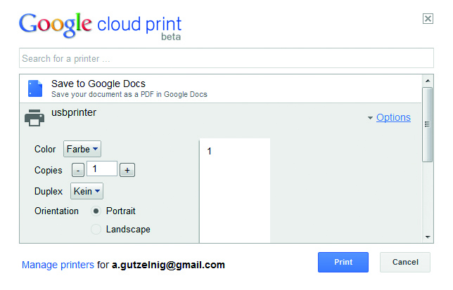 Android und Cloud Print