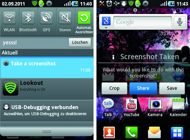 Je nach Einstellung schütteln Sie Ihr Smartphone oder tippen auf den Button in der Benachrichtigungsleiste, um ein Bildschirmfoto mit No Root Screenshot It zu erstellen.