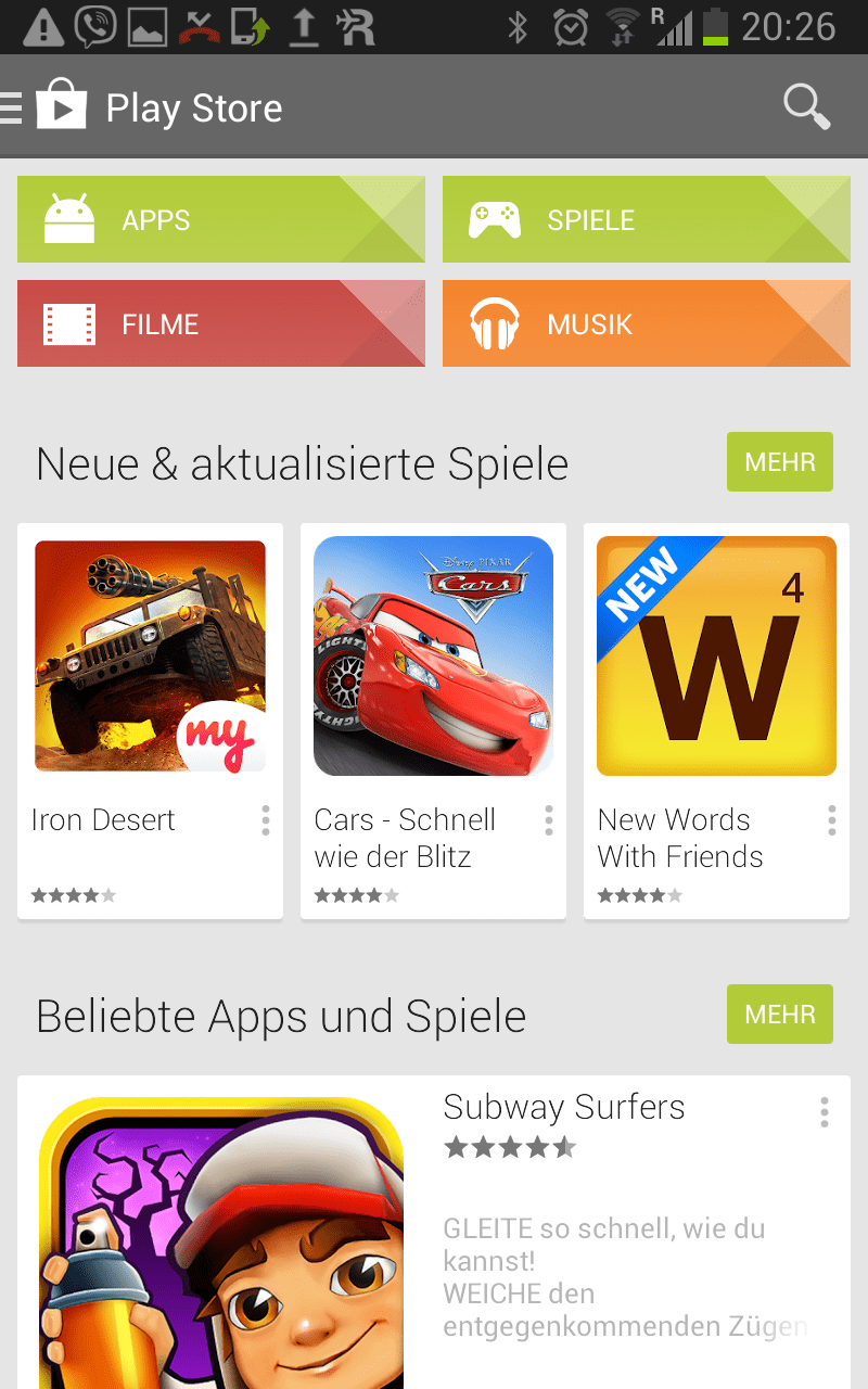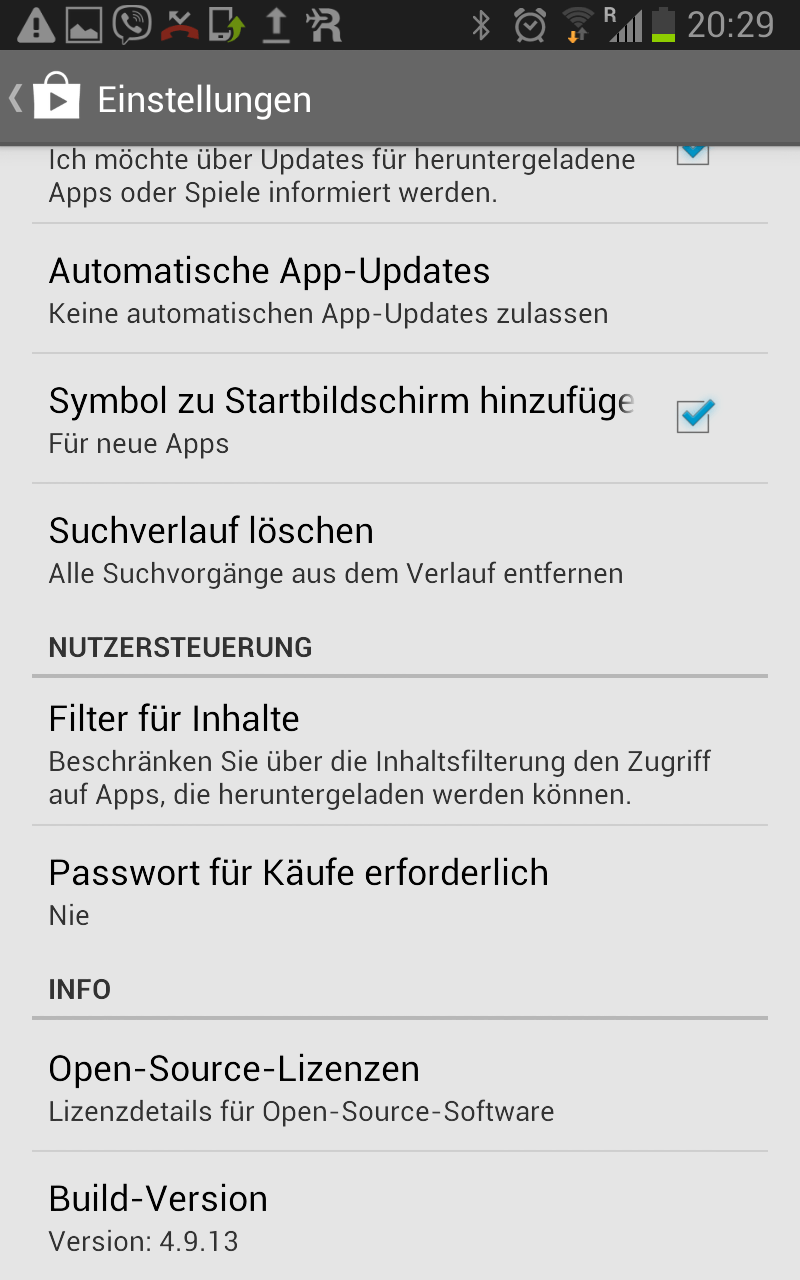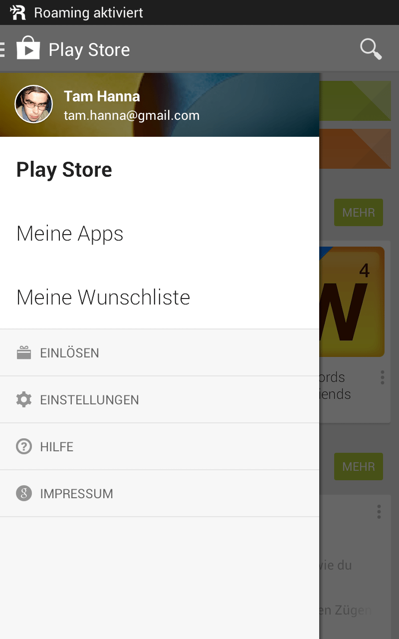 Google hat den Einstellungsdialog im Play Store geschickt versteckt. Klicken Sie auf das Menüsymbol in der linken Ecke des Bildschirms, um das Menü zu öffnen.