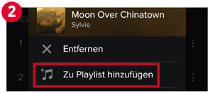 Fügen Sie dieser Wiedergabeliste mindestens elf weitere Musikstücke hinzu, indem Sie erst wieder den Menüpunkt „Zu Playlist hinzufügen“ aufrufen und dann den Namen der zuvor angelegten Wiedergabeliste antippen.