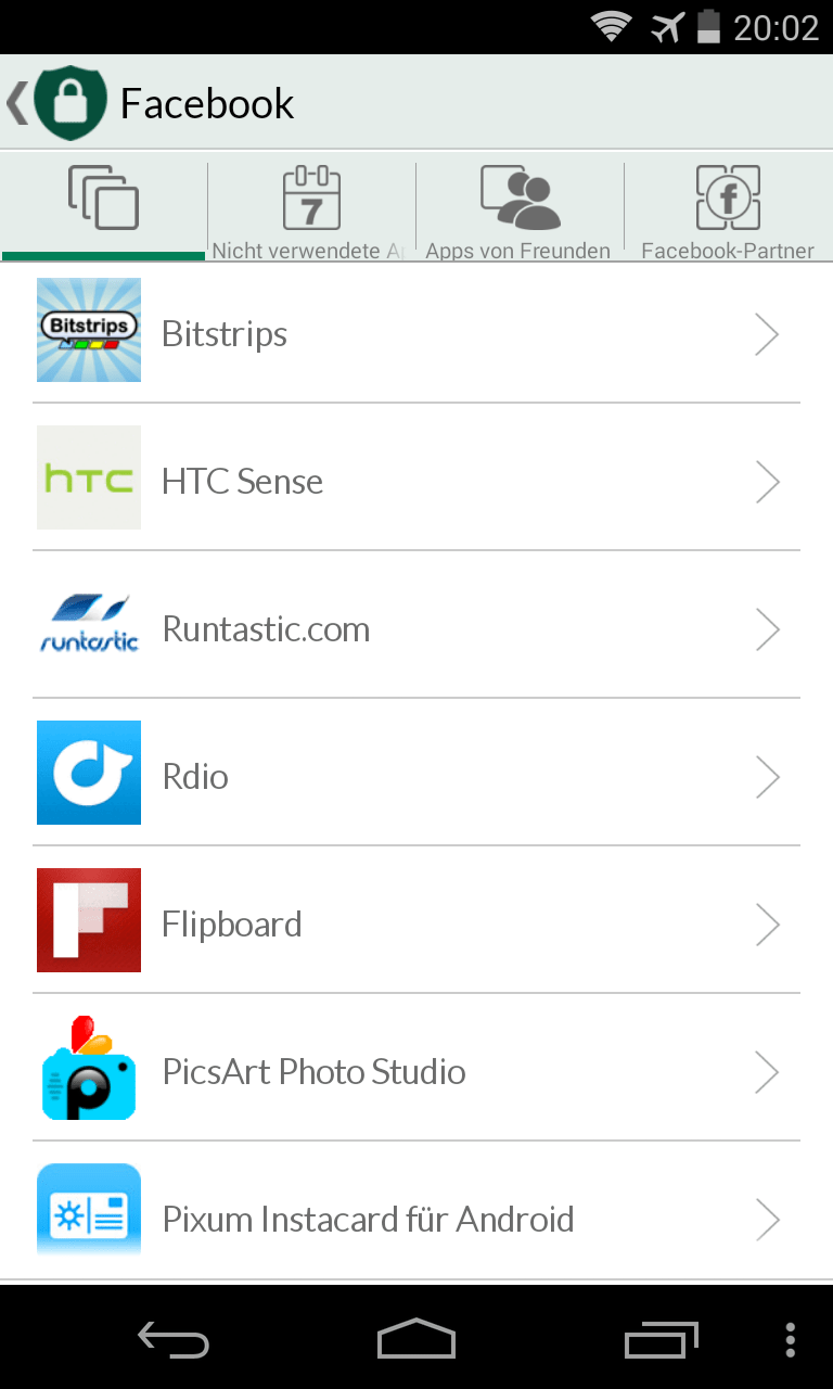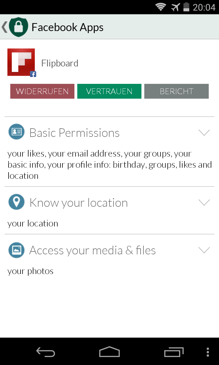 Als Belohnung erhalten Sie eine Liste von allen Apps, die das Recht haben, auf den ausgewählten Online-Dienst zugreifen. Tippen Sie das Pfeilsymbol rechts neben einer App an, um zu erfahren, welche konkreten Rechte sich diese Anwendung nimmt.