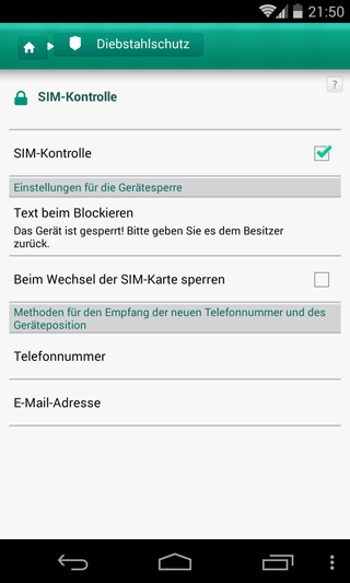 Tippen Sie im Fenster „Diebstahlschutz“ die Schaltfläche „SIM-Kontrolle“ an, und schalten Sie im Fenster „SIM-Kontrolle“ die Option „SIM-Kontrolle“ ein. – Schicken Sie von einem anderen Handy aus folgende SMS-Nachricht an die Telefonnummer Ihres Smartphones: alarm: 1234567 …