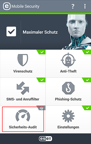 Autos und Smartphones haben eine große Gemeinsamkeit: Beide sollten regelmäßig auf ihre Sicherheit hin überprüft werden. Mit der Premium-Version von ESET Mobile Security nehmen Sie das für Ihren mobilen Begleiter selbst in die Hand. Hat die Sicherheitssoftware einen Mangel erkannt, wird dieser farbig markiert und auf den digitalen Prüfstand gehoben.