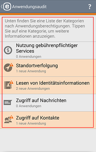 Haben Sie die Apps überprüft, ist alles wieder grau hinterlegt. Sobald ein Update die Rechte einer App verändert, werden Sie dies hier wieder als Markierungen in Orange sehen.
