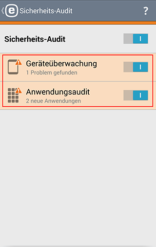 Sollten die Kategorien „Geräteüberwachung“ und/oder „Anwendungsaudit“ orange hinterlegt sein, dann klicken Sie diese bitte an.