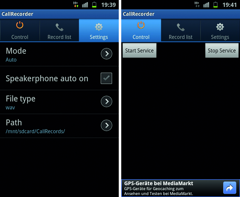 Um das nächste Gespräch aufzuzeichnen, unter ‚Control‘ auf ‚Start Device‘ klicken und drauf los telefonieren. Sollen alle künftigen Gespräche aufgezeichnet werden, diese Funktion aktiv lassen.