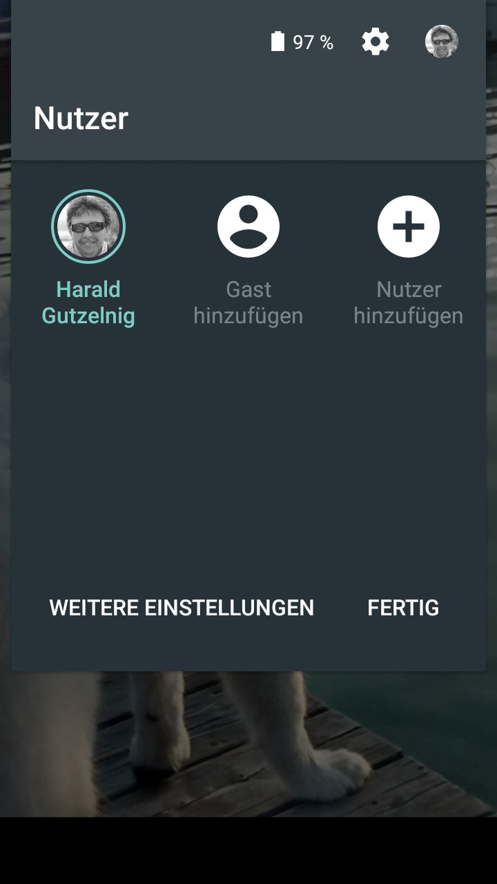 Um den Gastmodus zu aktivieren, wählen Sie in den Einstellungen  den Eintrag „Nutzer“ . Oder Sie ziehen vom Sperrschirm die Schnelleinstellungen mit einem Wisch von oben nach unten und tippen auf das Profilbild rechts oben.