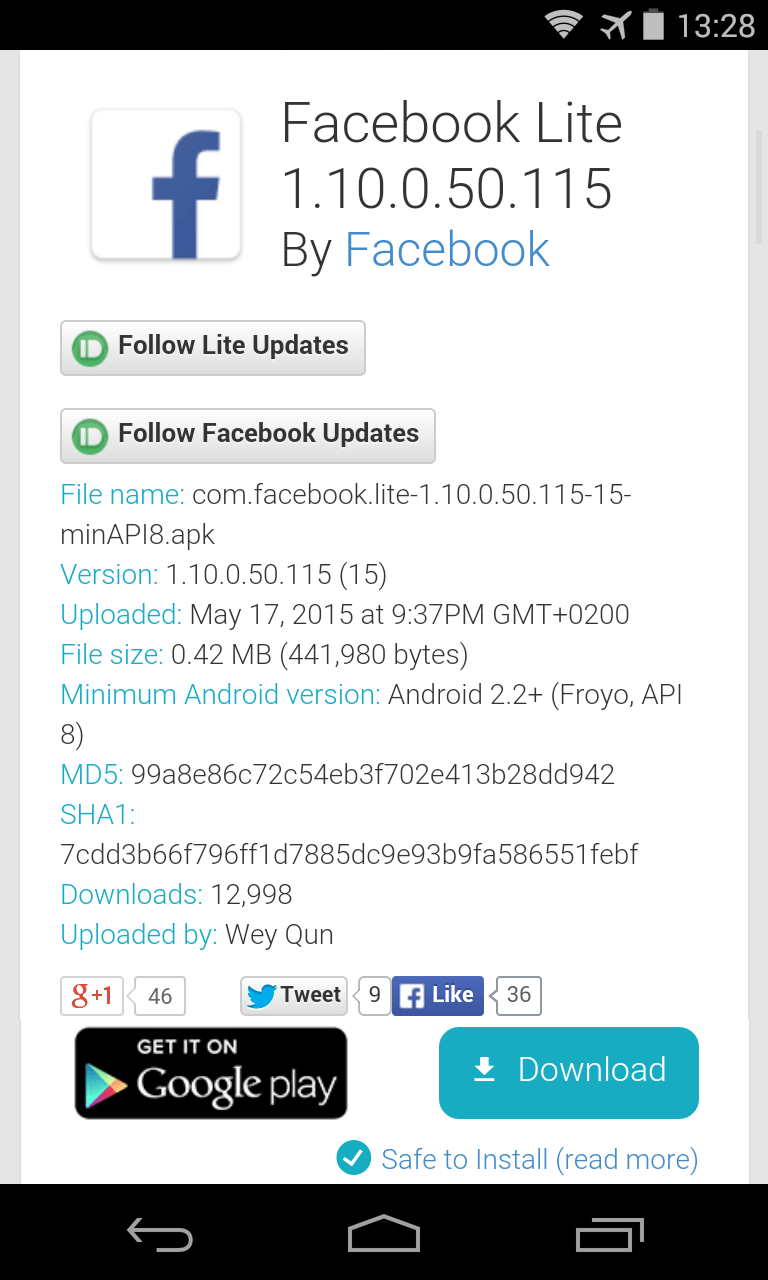 Haben Sie mit dem „APK Downloader“ keinen Erfolg? Dann suchen Sie einfach mit Google nach der Installationsdatei der App. Zum Ziel kommen Sie in der Regel mit dem Suchbegriff „[Name der App] apk“, also beispielsweise: „facebook lite apk“.