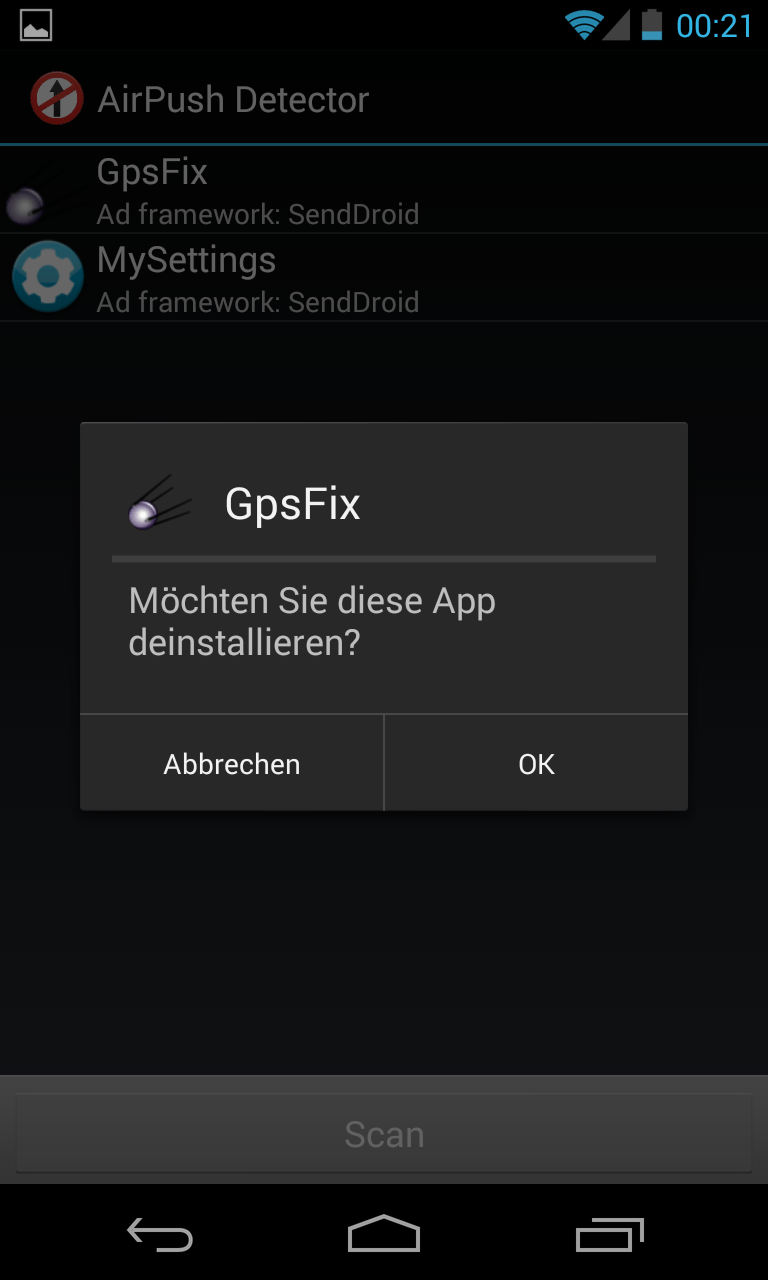 präsentiert Ihnen AirPush Detector eine Liste aller gefundenen derartigen Apps.