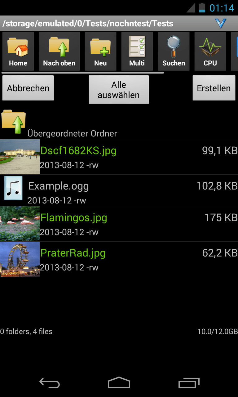 Tippen Sie die Schaltfläche „Multi“ an und dann die Option „Mehrfach-ZIP“. Wählen Sie die Dateien aus, die in dem Archiv enthalten sein sollen, und tippen Sie schließlich die Schaltfläche „Erstellen“ an.