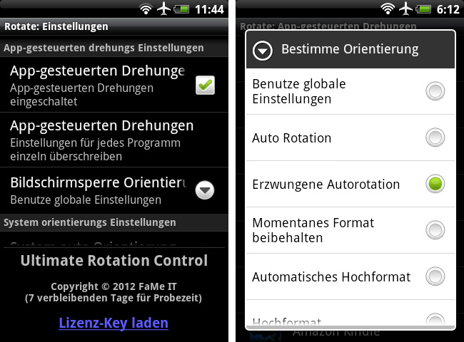 Nicht alle Apps spielen beim Wechseln zwischen dem waagrechten und dem senkrechten Bildschirmmodus brav mit. Dank des Programms „Ultimate Rotation Control“ kannst du sie aber meist in die gewünschte Ausrichtung zwingen.