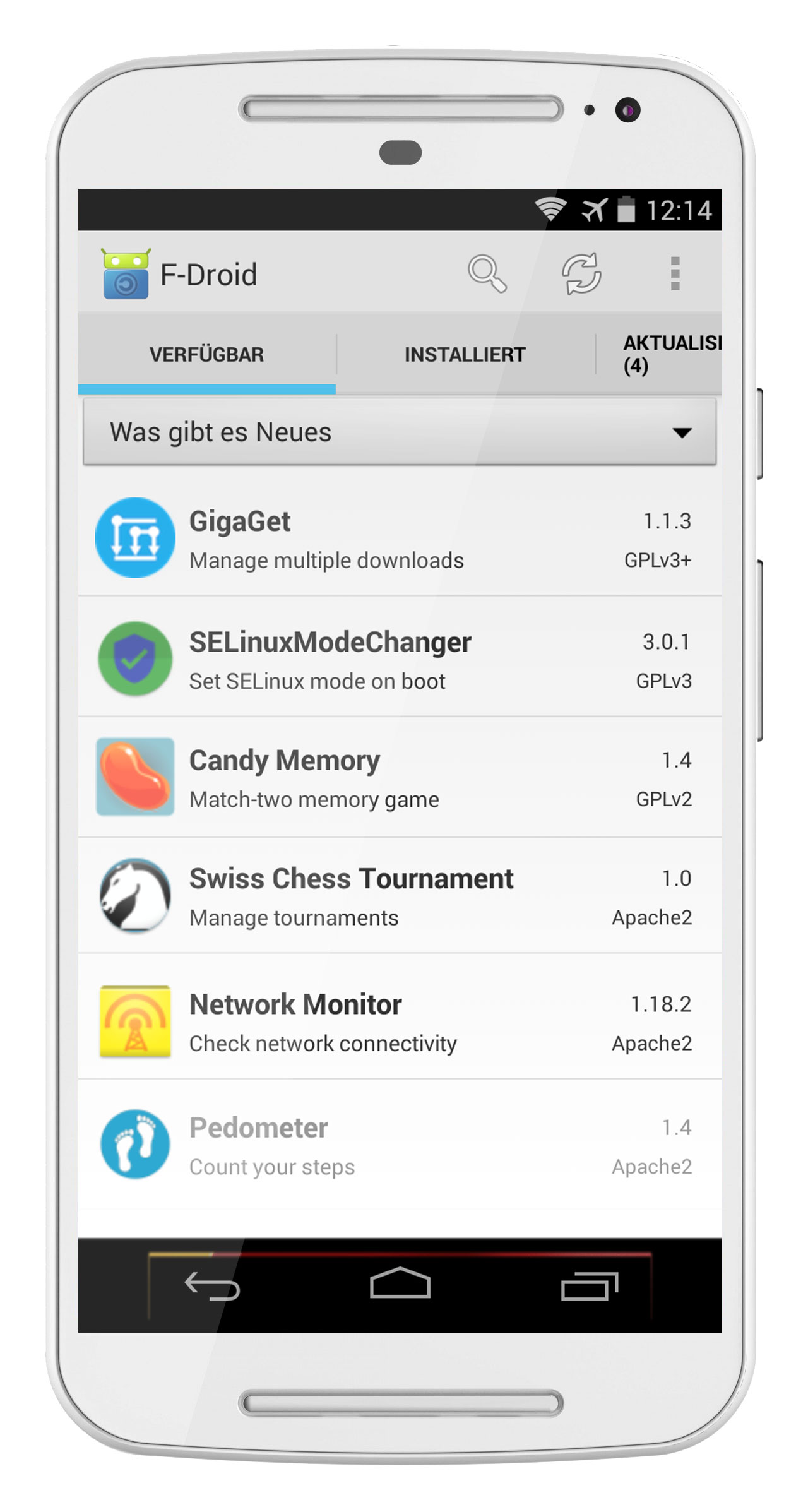 Sowohl der Web-Shop als auch die App Âzeigen die Versionsnummern der Apps an. Oft stehen auch mehrere Versionen zum HerunterÂladen zur Verfügung. Der Web-Shop listet brav die Berechtigungen der Apps auf. Bei der F-DroidÂ-App müssen Sie dies erst in ihren Einstellungen einschalten.