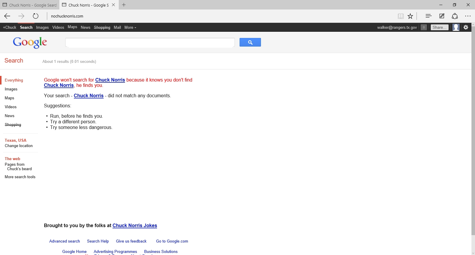 Wenn dieses Easter Egg bei Ihnen nicht mehr funktioniert, müssen Sie nicht verzagen. Die Ergebnisseite finden Sie unter www.nochucknorris.com.