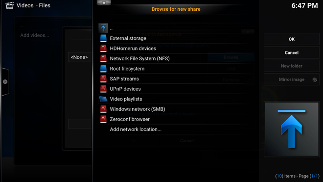 Haben Sie das Paket für das Betriebssystem Ihres Mediacenters heruntergeladen und installiert (oder im Fall einer Set-Top-Box wie dem Nexus Player die Kodi-App über den Store geladen), müssen Sie Kodi zunächst zu den Speicherorten Ihrer Medien lotsen. Das kann entweder ein lokaler Ordner auf dem PC sein, oder eine Netzwerkfreigabe (zum Beispiel per SMB oder NFS).