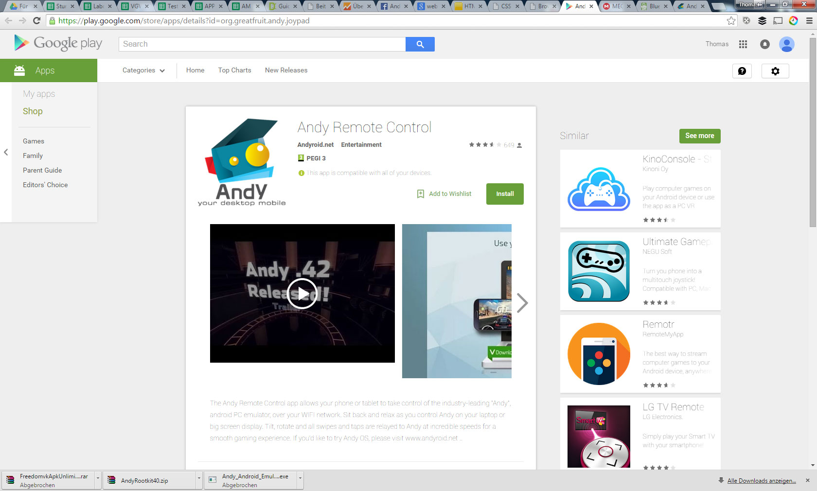 Um Andy vom Smartphone aus steuern zu können, müssen Sie die App „Andy Remote Control“ aus dem Play Store herunterladen.
