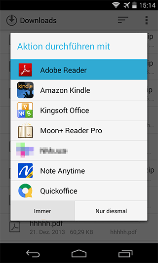 Sind mehrere Apps auf Ihrem Smartphone installiert, die denselben Zweck erfüllen, dann fragt das Betriebssystem, welche App Sie verwenden möchten. Tippen Sie im Dialogfenster „Aktion durchführen mit“ die Schaltfläche „Nur diesmal“ an, wenn Sie …
