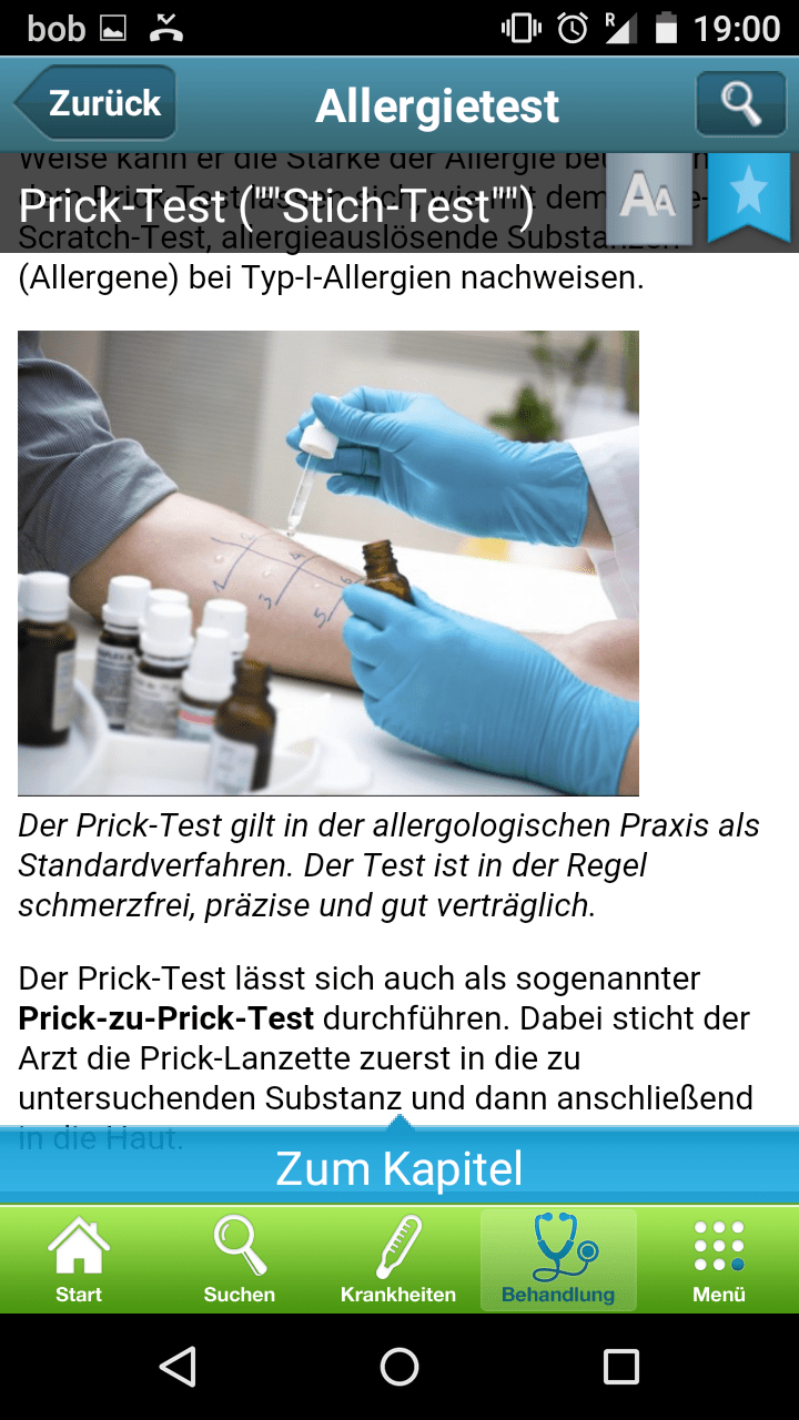 Hier handelt es sich um eine äußerst umfassend Gesundheitsapp mit Informationen zu den Themen Gesundheit, Fitness und Vorsorge. Vom Achillessehnenriss bis zu Zyklusstörungen finden wir alle Krankheiten, die uns im Laufe unseres Lebens treffen könnten. Interessant: Wir können in diversen Tests feststellen, ob wir Allergiker, Bournout-gefährdet oder etwa Diabetiker sind, aber auch der BMI lässt sich berechnen. Selbst den Symptomen und den Behandlungen sind eigene Abschnitte gewidmet.