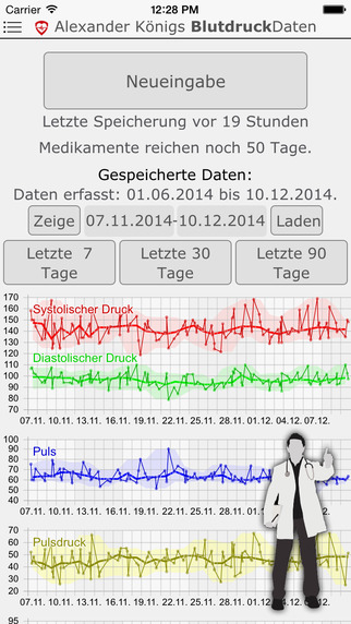 Zu hoher Blutdruck ist ungesund. Also sollten wir ihn regelmäßig kontrollieren. Die vorliegende App kann die Messdaten verwalten und grafisch ansprechend aufbereiten. Die App erinnert uns nicht nur an die anstehenden Messungen sondern liefert zusätzlich eine grafische Aufbereitung aller eingetragenen Daten, die auch Ihren Arzt bei der Verlaufskontrolle unterstützen kann.