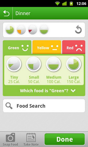 Aus diesem Grunde loggt man bei Noom auch nicht exakt die zu sich genommenen Kalorien mit, sondern trägt die Größe der Mahlzeit nur grob anhand eines Tortendiagramms ein. Die dabei verwendete Farbe gibt der Applikation darüber Auskunft, ob die Mahlzeit eher kalorienarm oder gehaltvoll war.